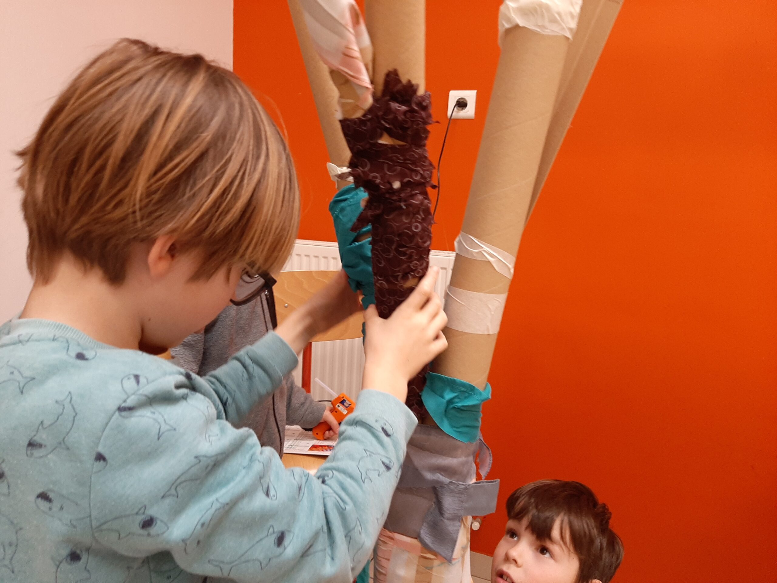 En lien avec le projet de forêt comestible mené à l’école, nous avons imaginé, avec les enfants, cette forêt intérieure pour attendre le printemps…