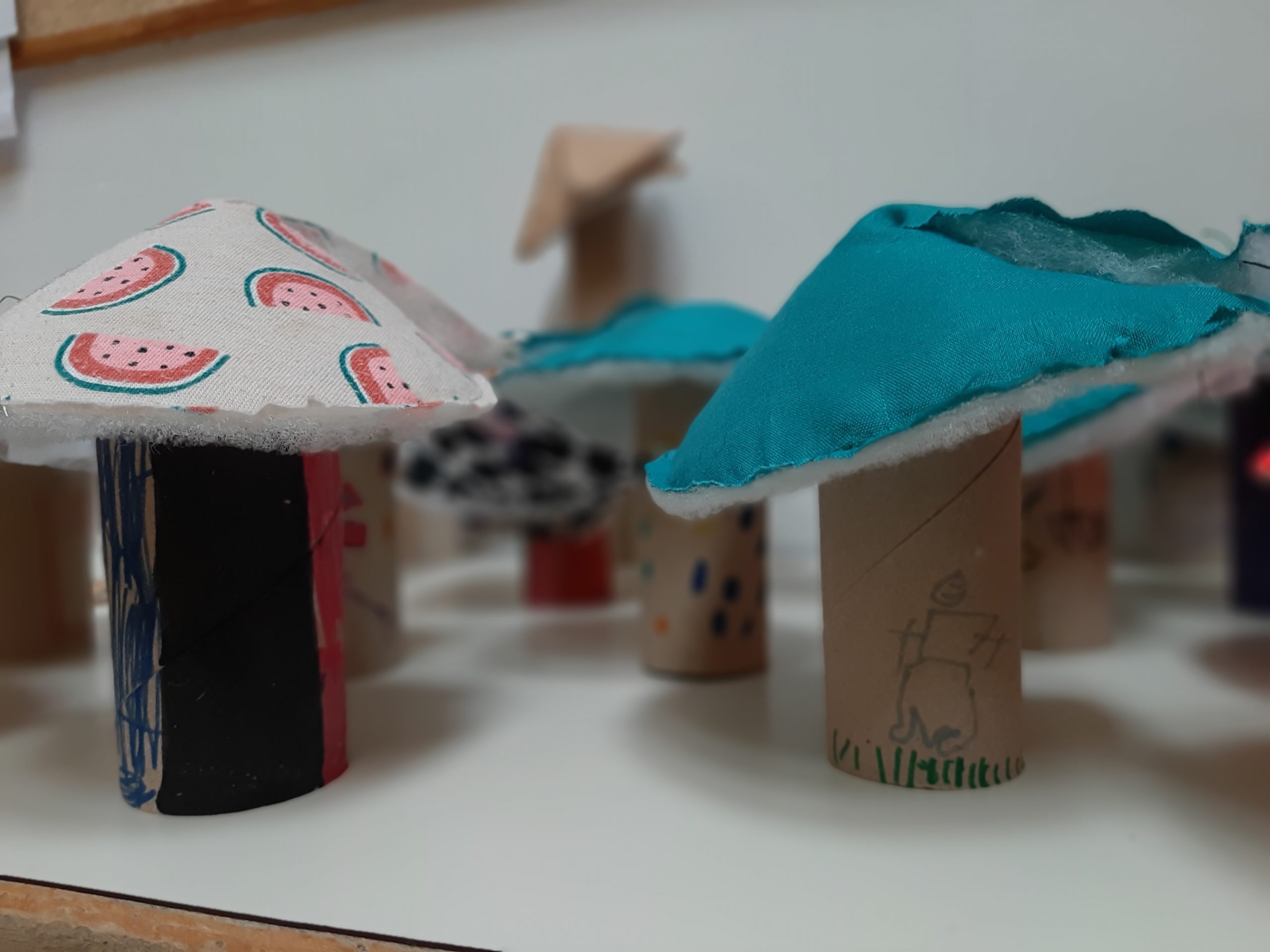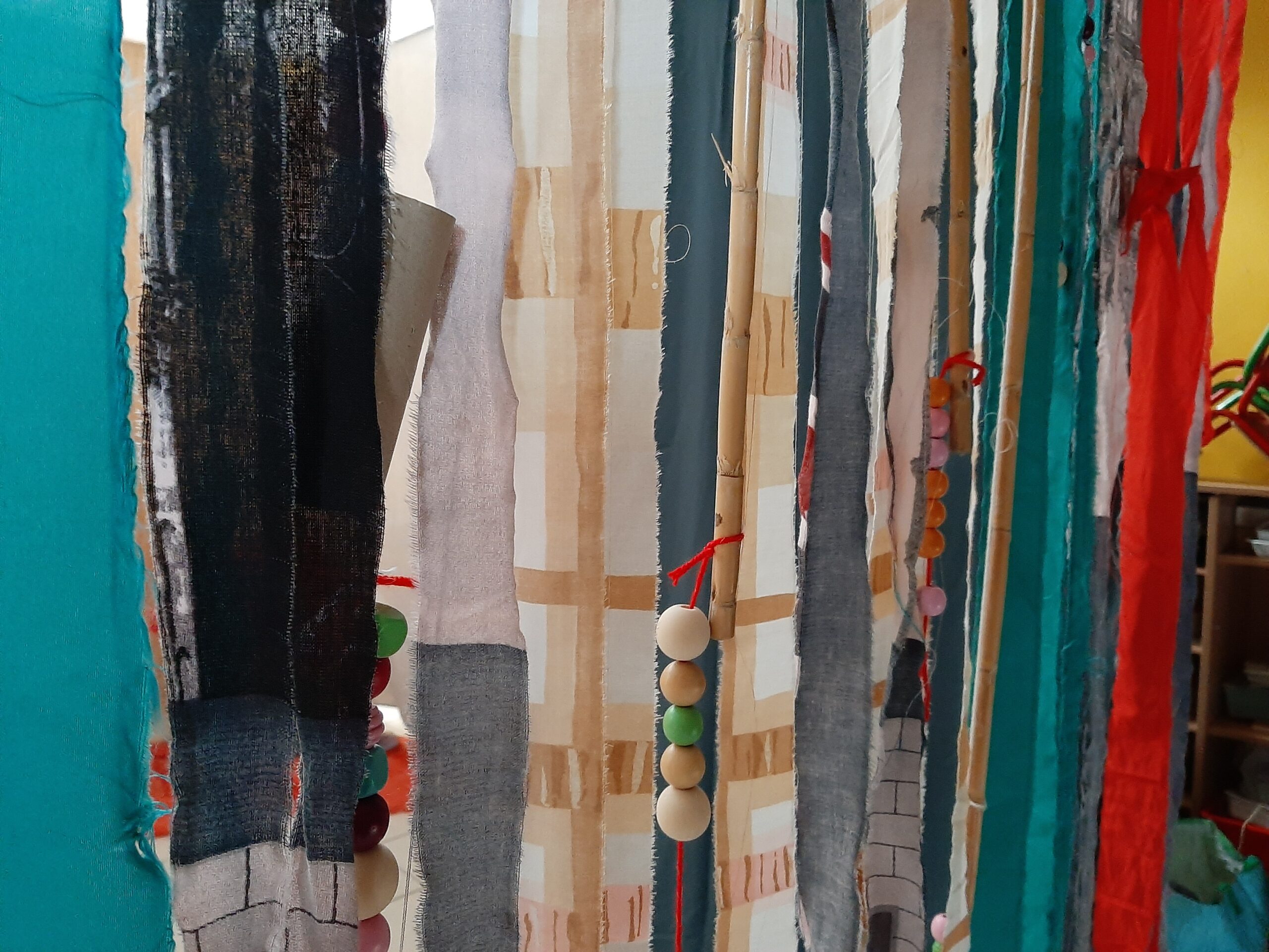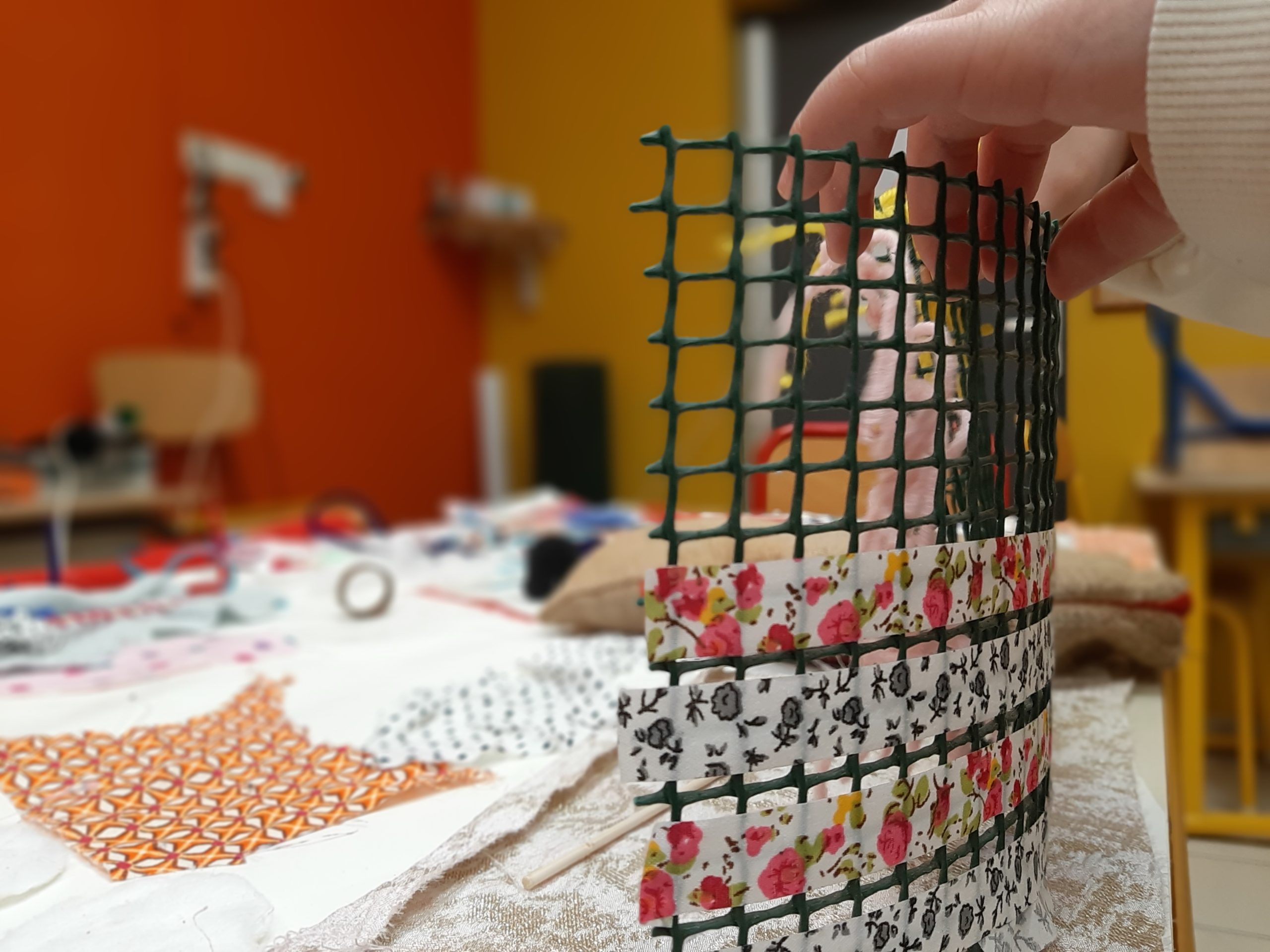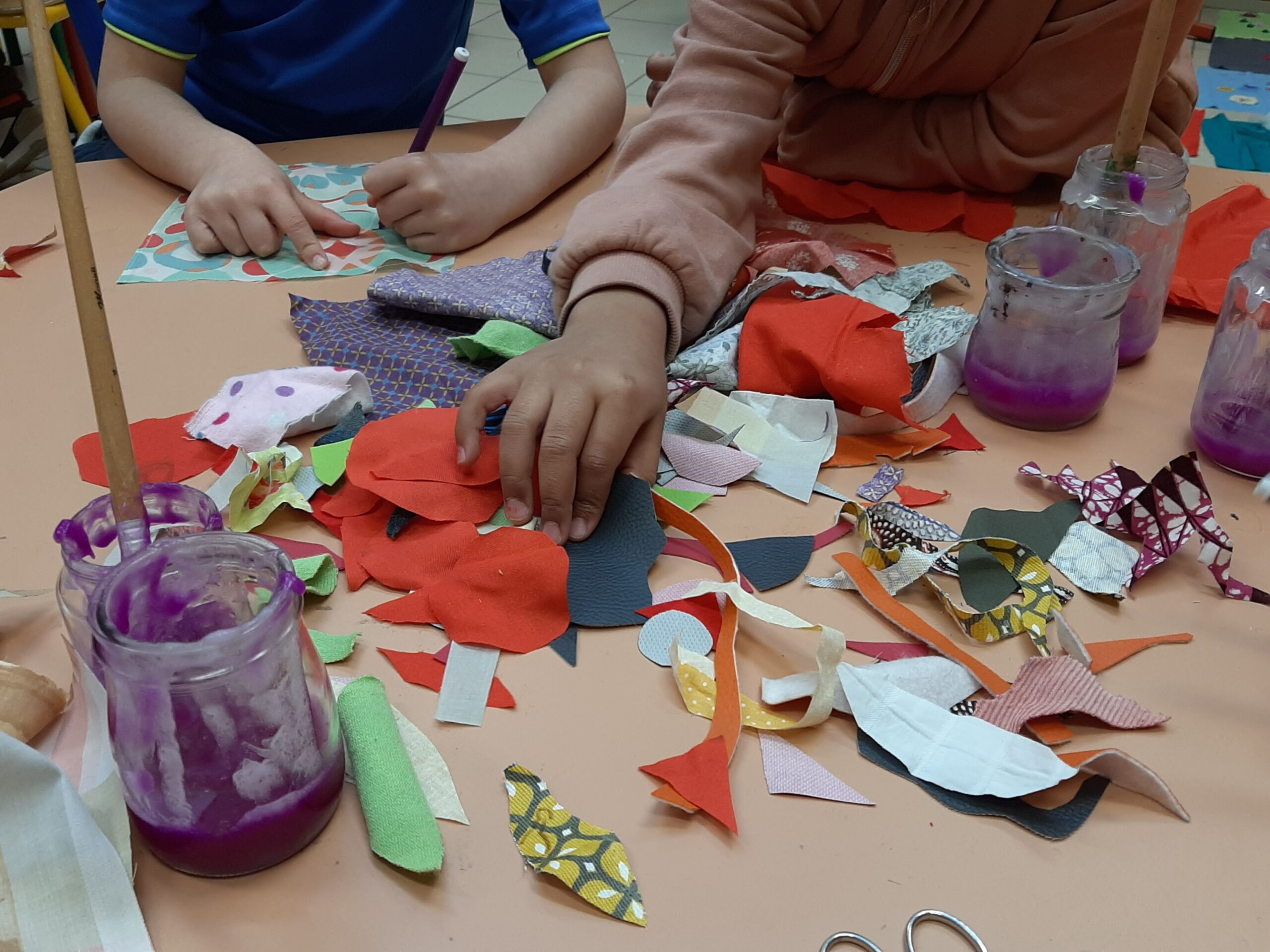 Ensemble, nous avons exploré les matériaux récupérés par chacun et regardé comment les détourner pour fabriquer notre cabane-forêt immersive, construite à l’intérieur d’une structure en bois créée pour l’occasion par les parents d’élèves. A l’issue de la semaine, les familles ont pu visiter notre installation immersive, sur fond de chants d’oiseaux diffusés en fond sonore. Magique. Poétique.