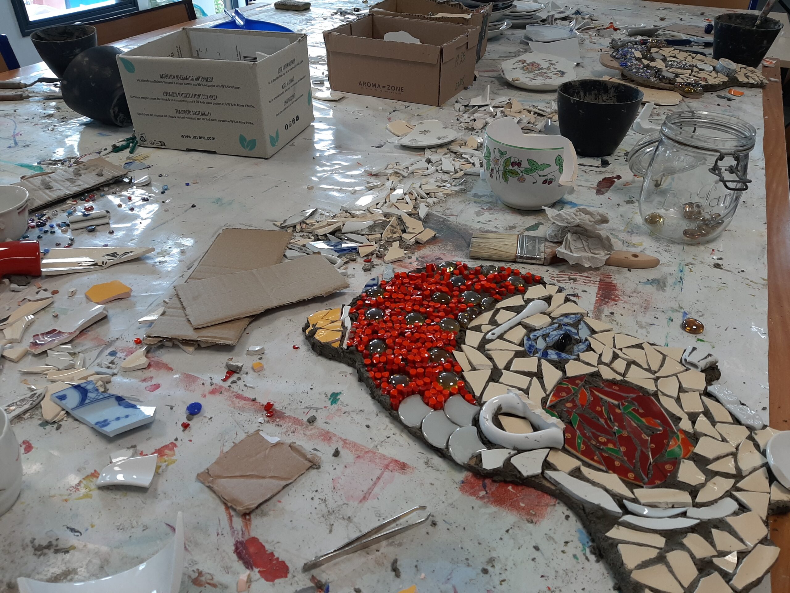 Une Master class pendant les vacances pour créer à partir d’objets recyclés ? Voilà un super projet. Pari tenu avec un cinquantaine de jeunes, pendant les vacances scolaires. C’est avec 3 autres artistes du territoires que nous avons imaginé ces ateliers, fait de faïences recyclés, de tissus et de petits mobiliers… En fin de parcours, nos installations seront même exposées au Gentieg, dans le cadre de la semaine du réemploi !
