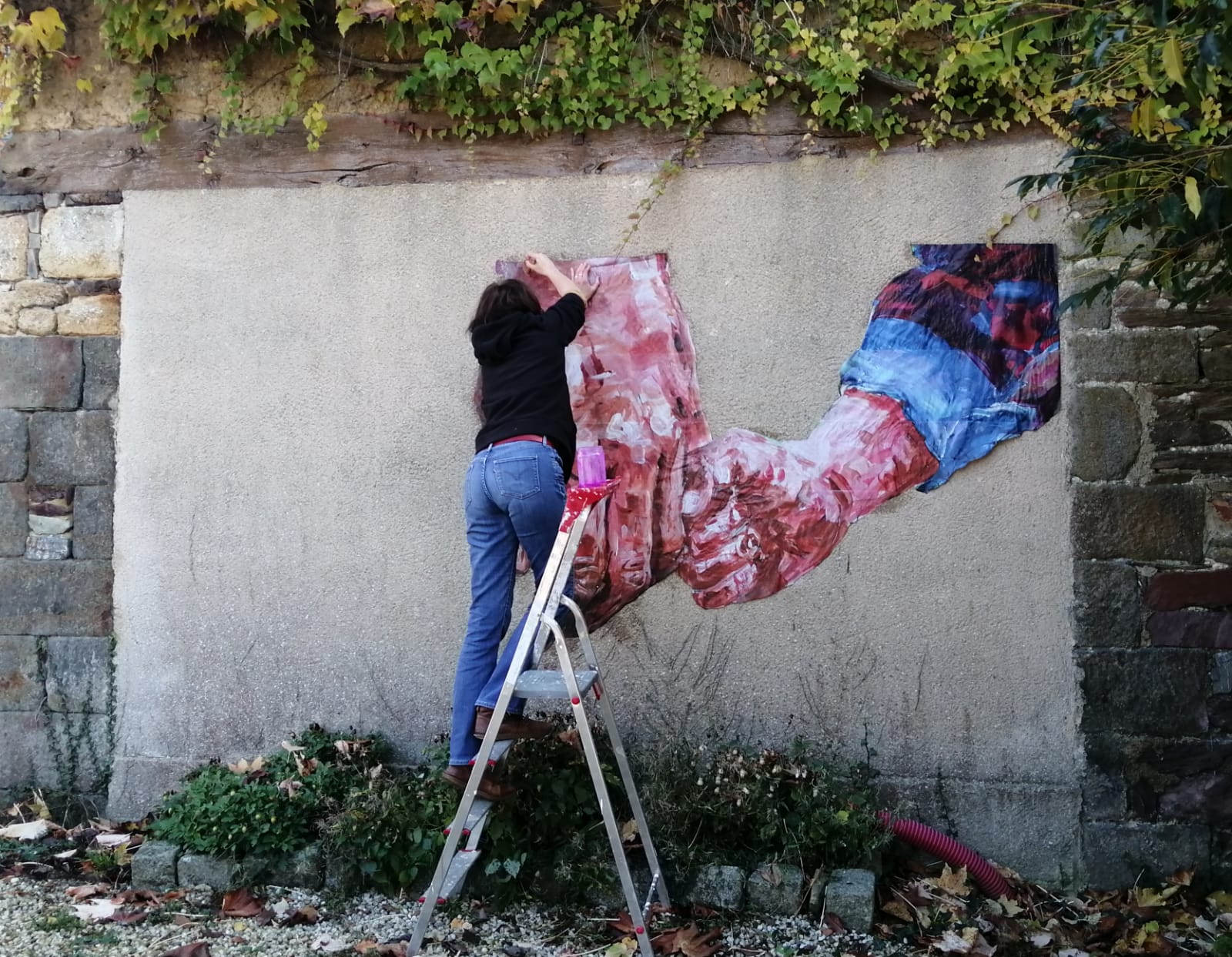 En lien avec les valeurs des éleveurs : le partage, la transmission, création d’un collage grand format sur mur.