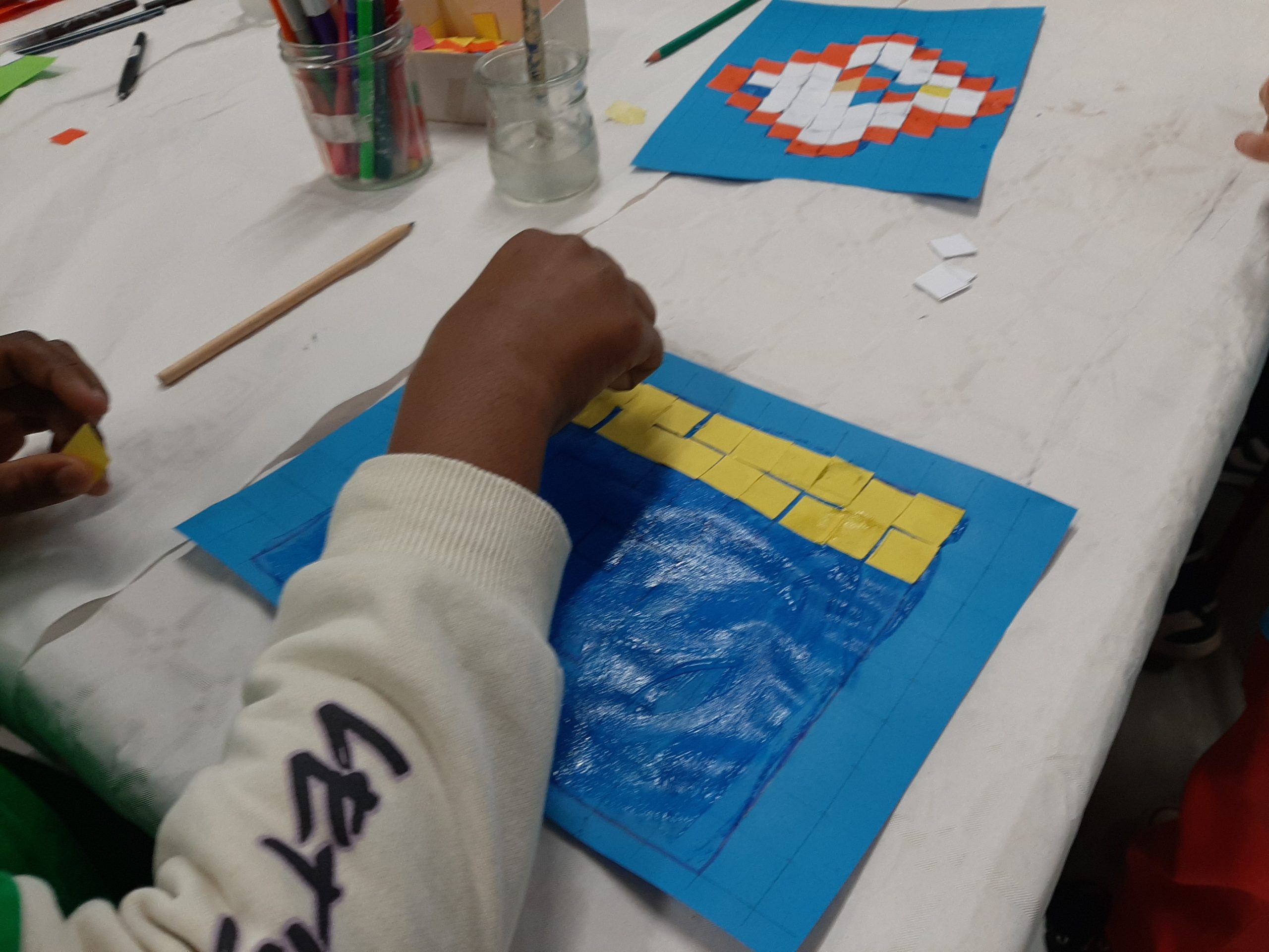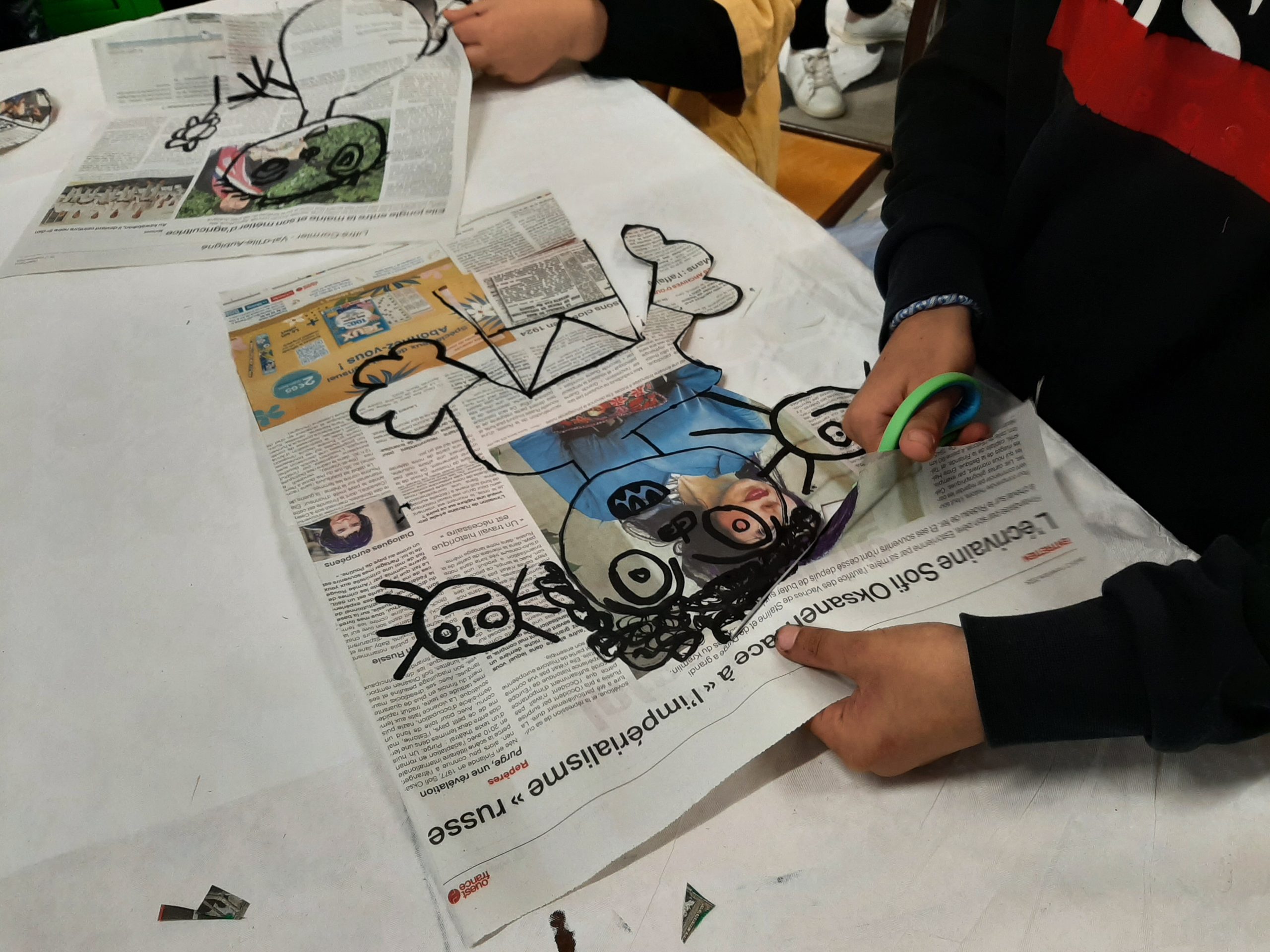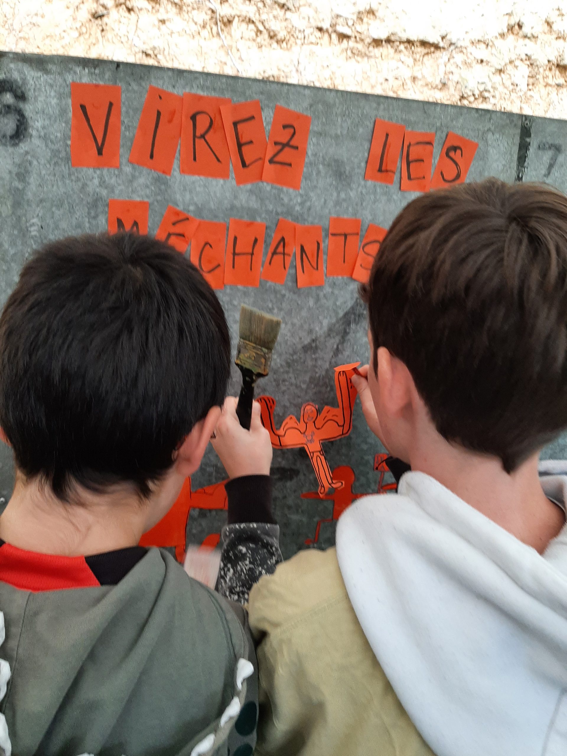 - Réalisation d’un fresque par classe, avec des techniques différentes