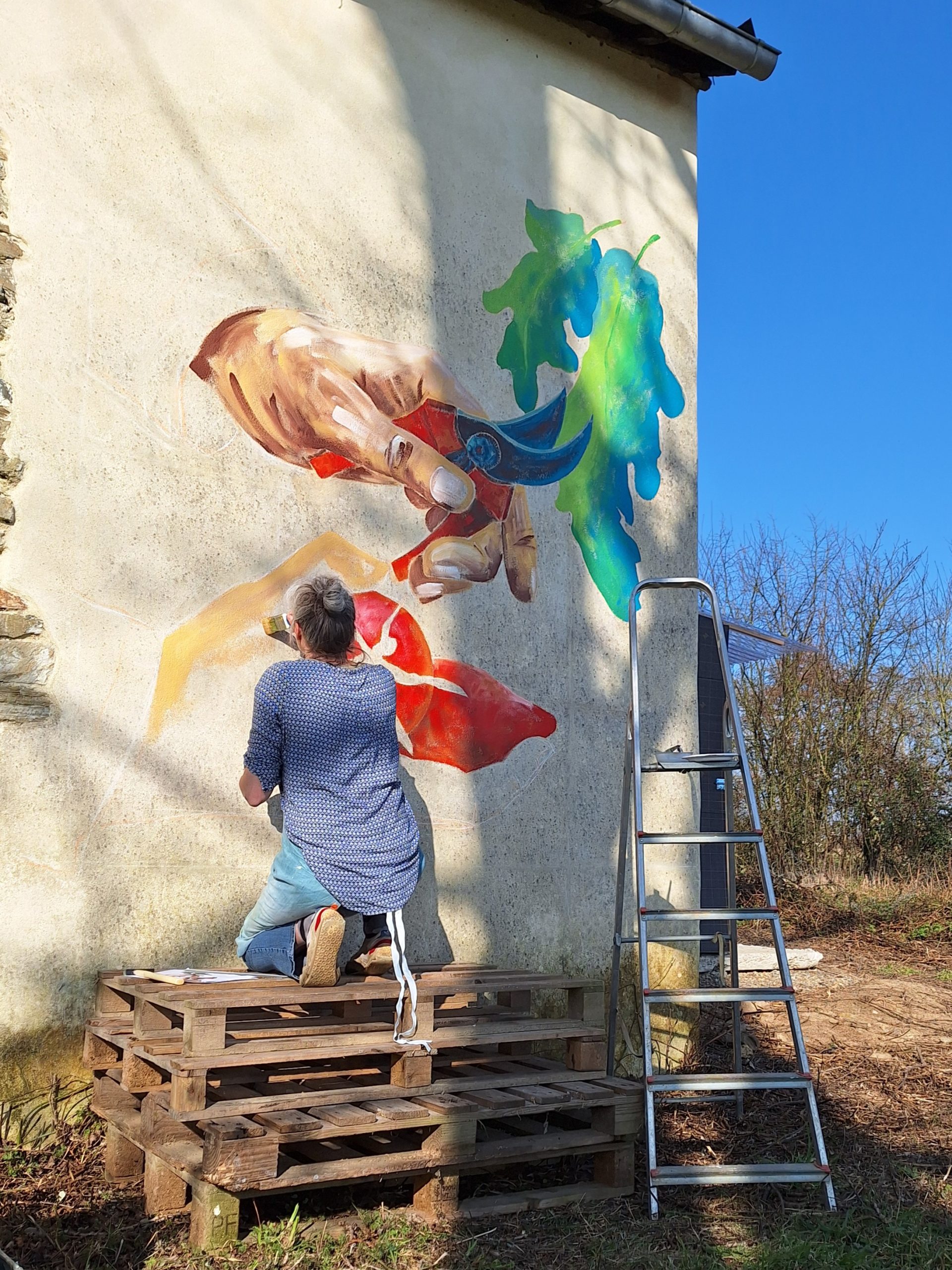 - Réalisation de la fresque murale sur site. Une création unique