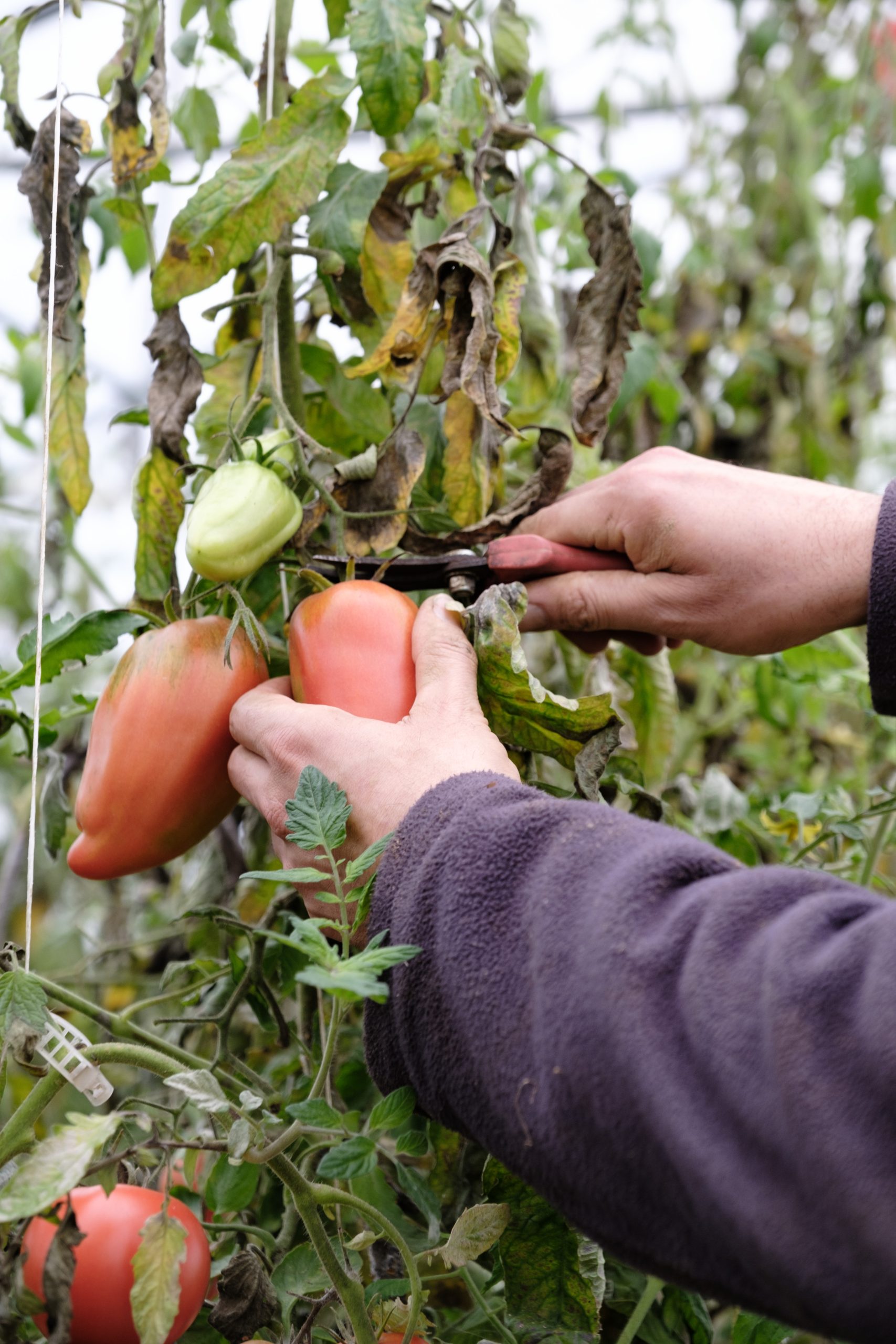 "C'est génial. Ca va nous booster pour le magasin et la cueillette. Et on la voit de loin, depuis le parking. Ca change tout... Tu sais que cette variété s'appelle l' cornue des Andes ? On la reconnait bien !"