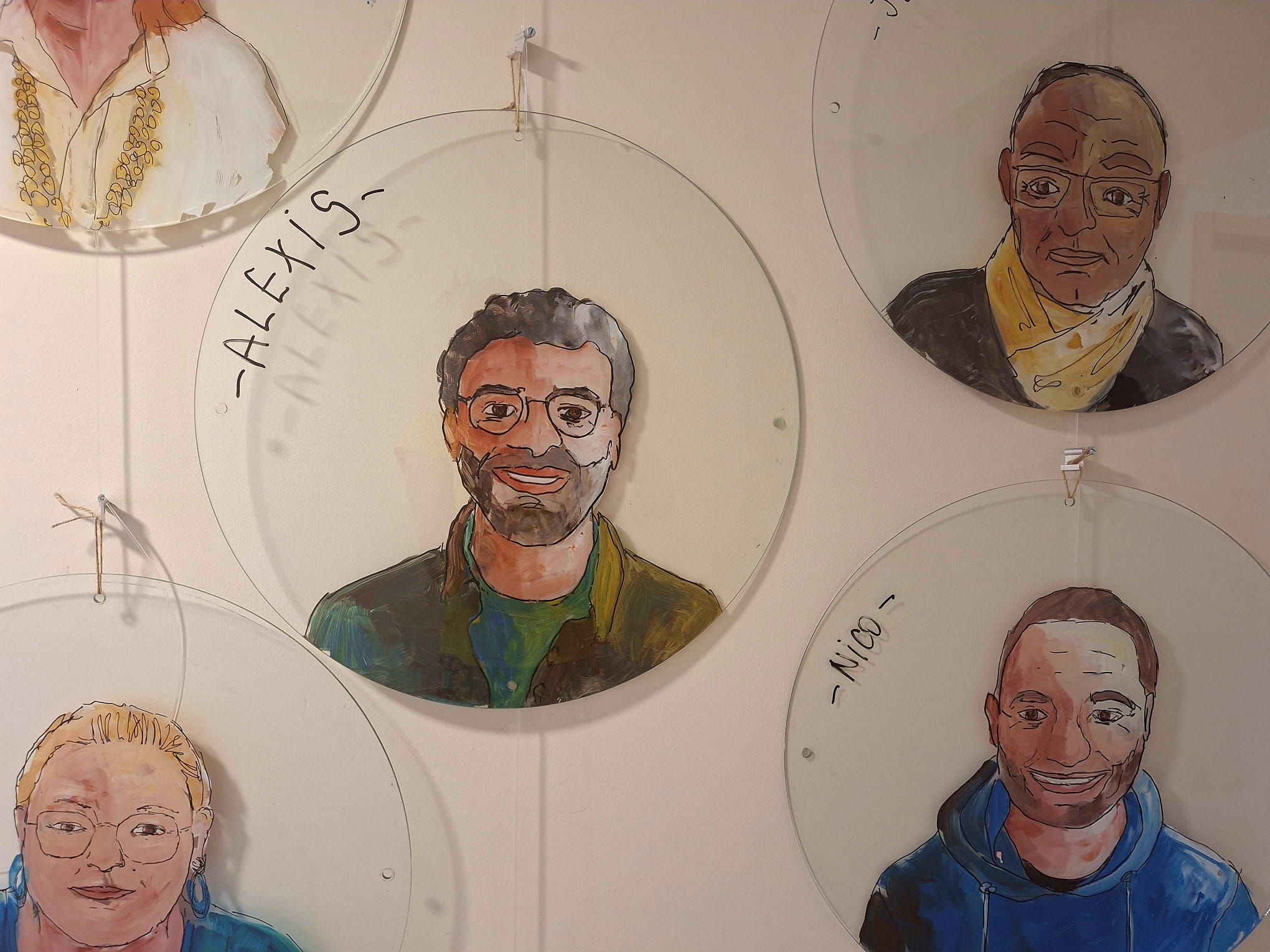 " Je retrouve des traits et des expressions de mon visage quand j'étais jeune ! Ca fait une chouette équipe sur le mur !!! "