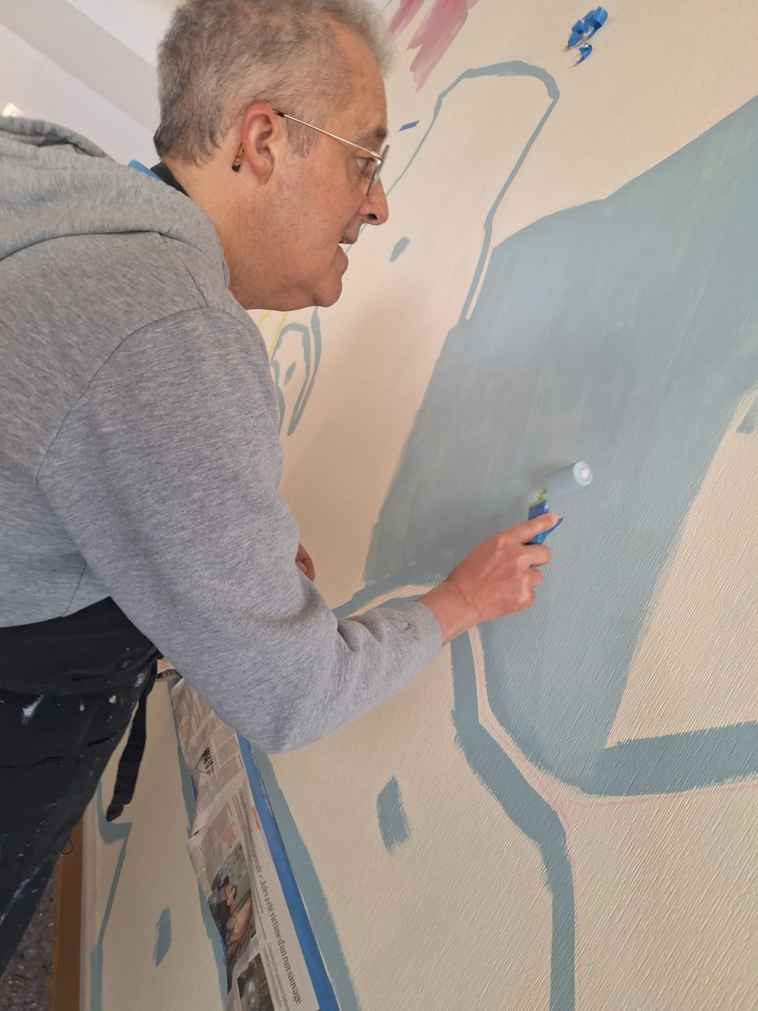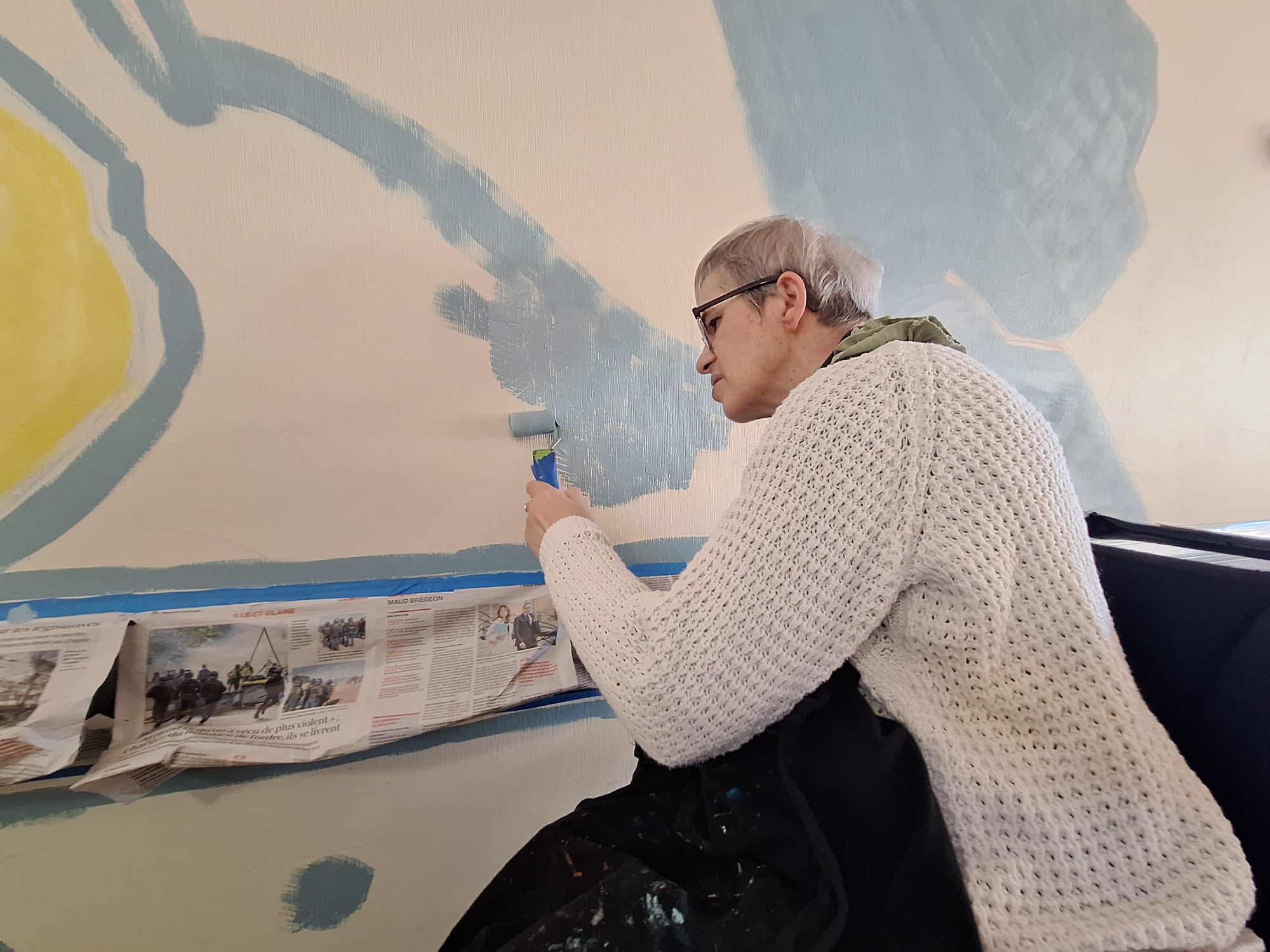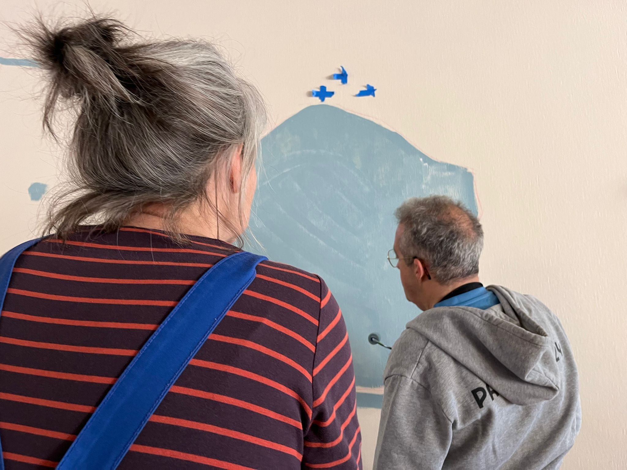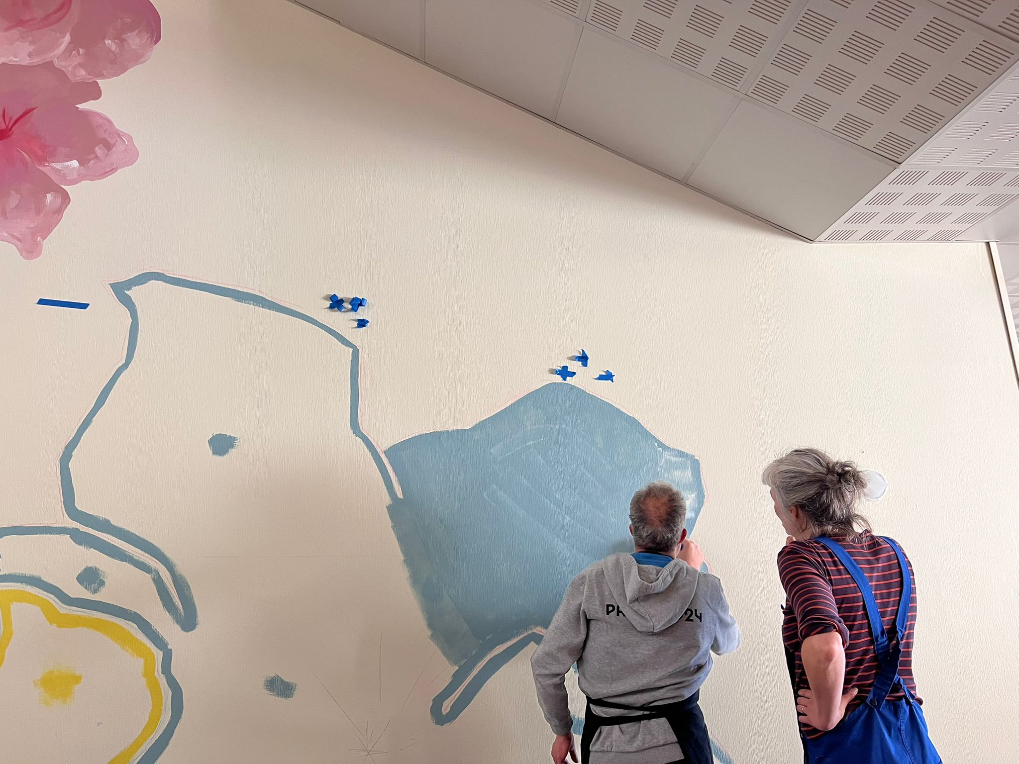- Elaboration de la fresque à partir des croquis et des essais de couleurs réalisés avec les résidents
