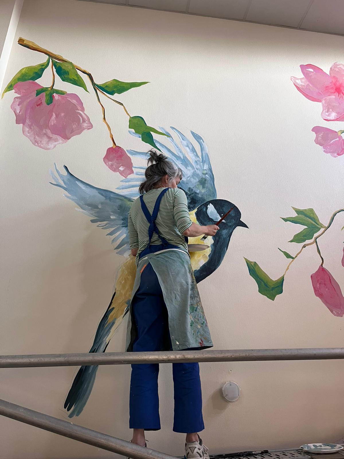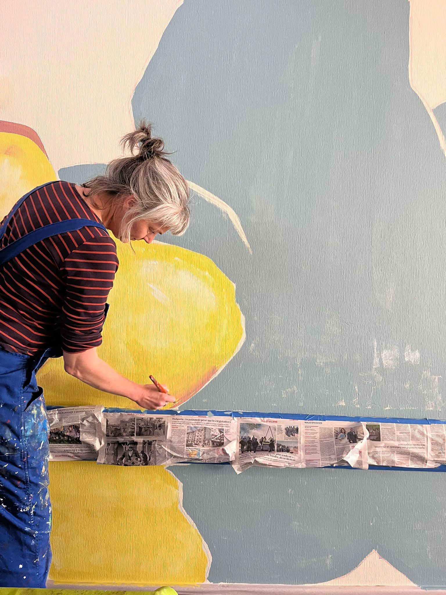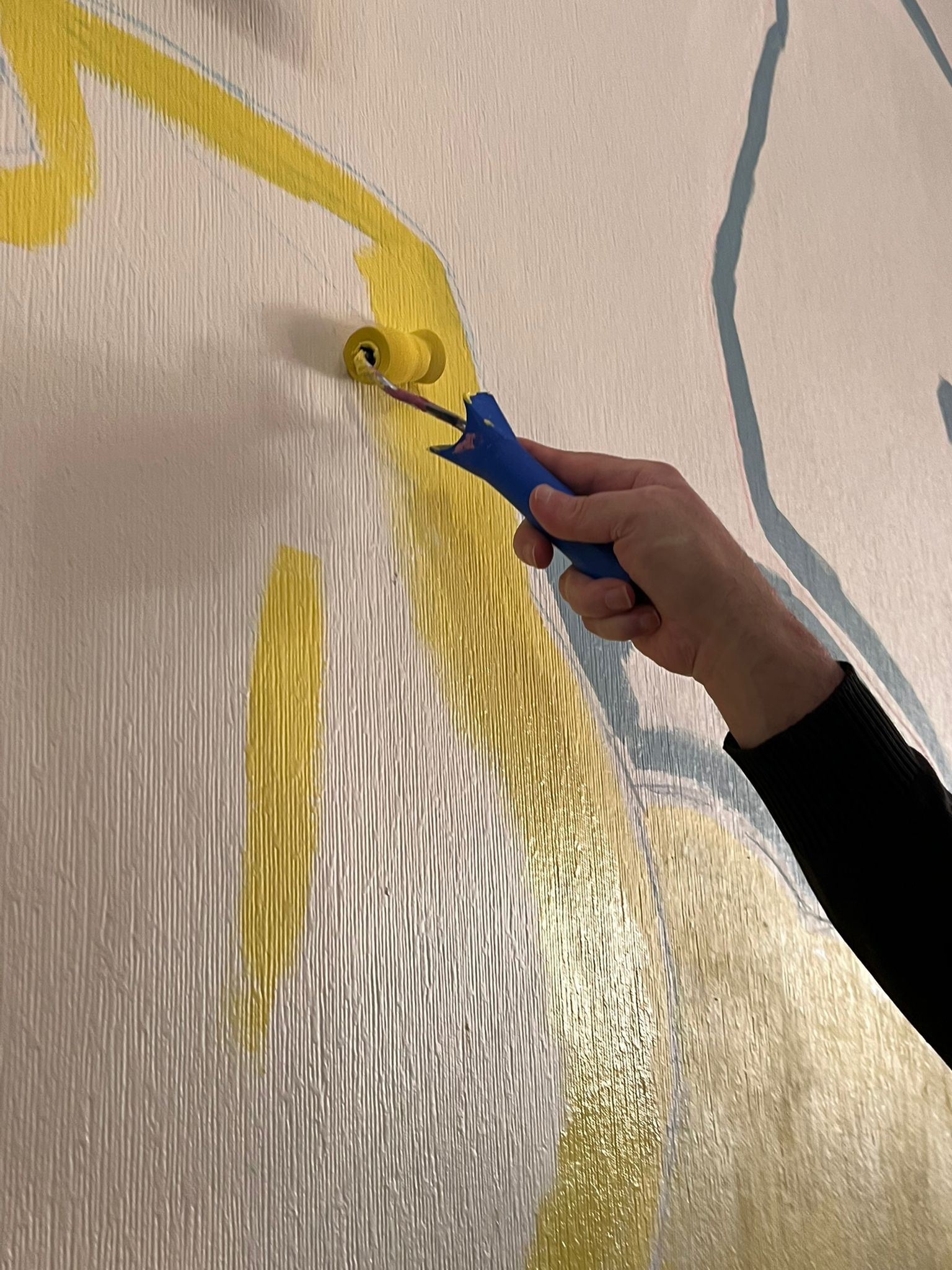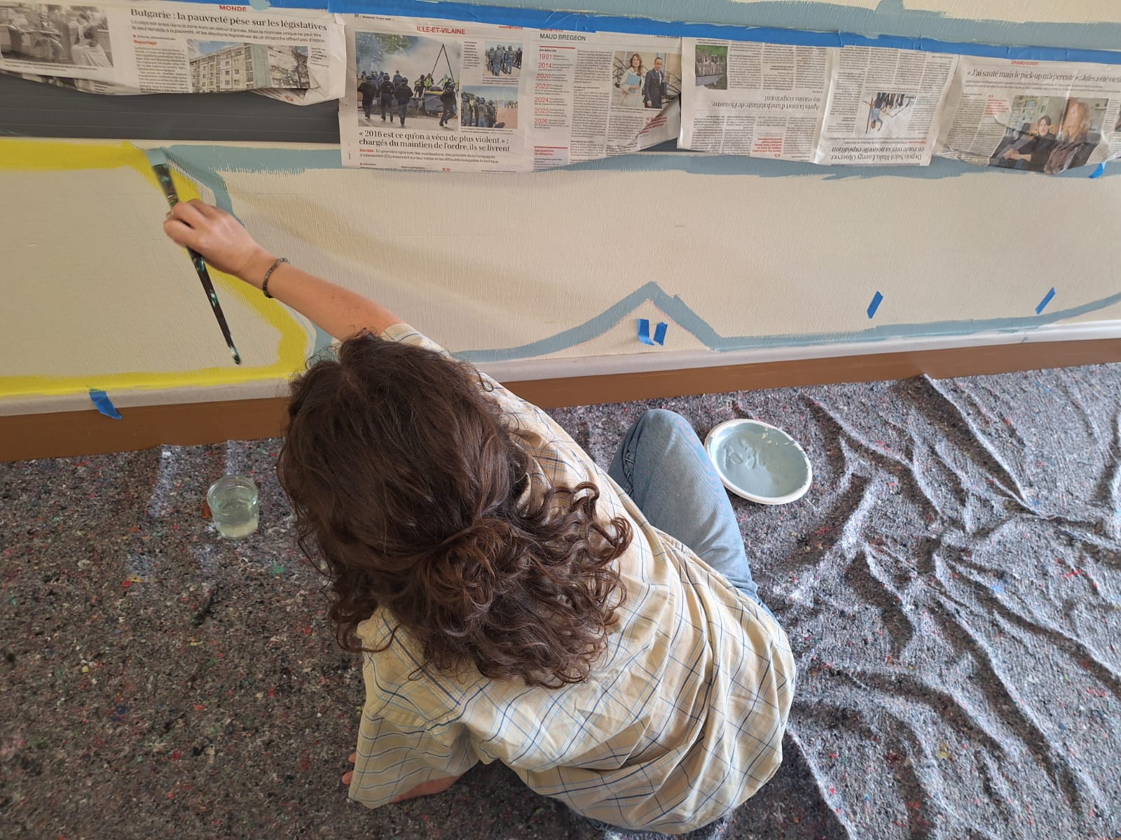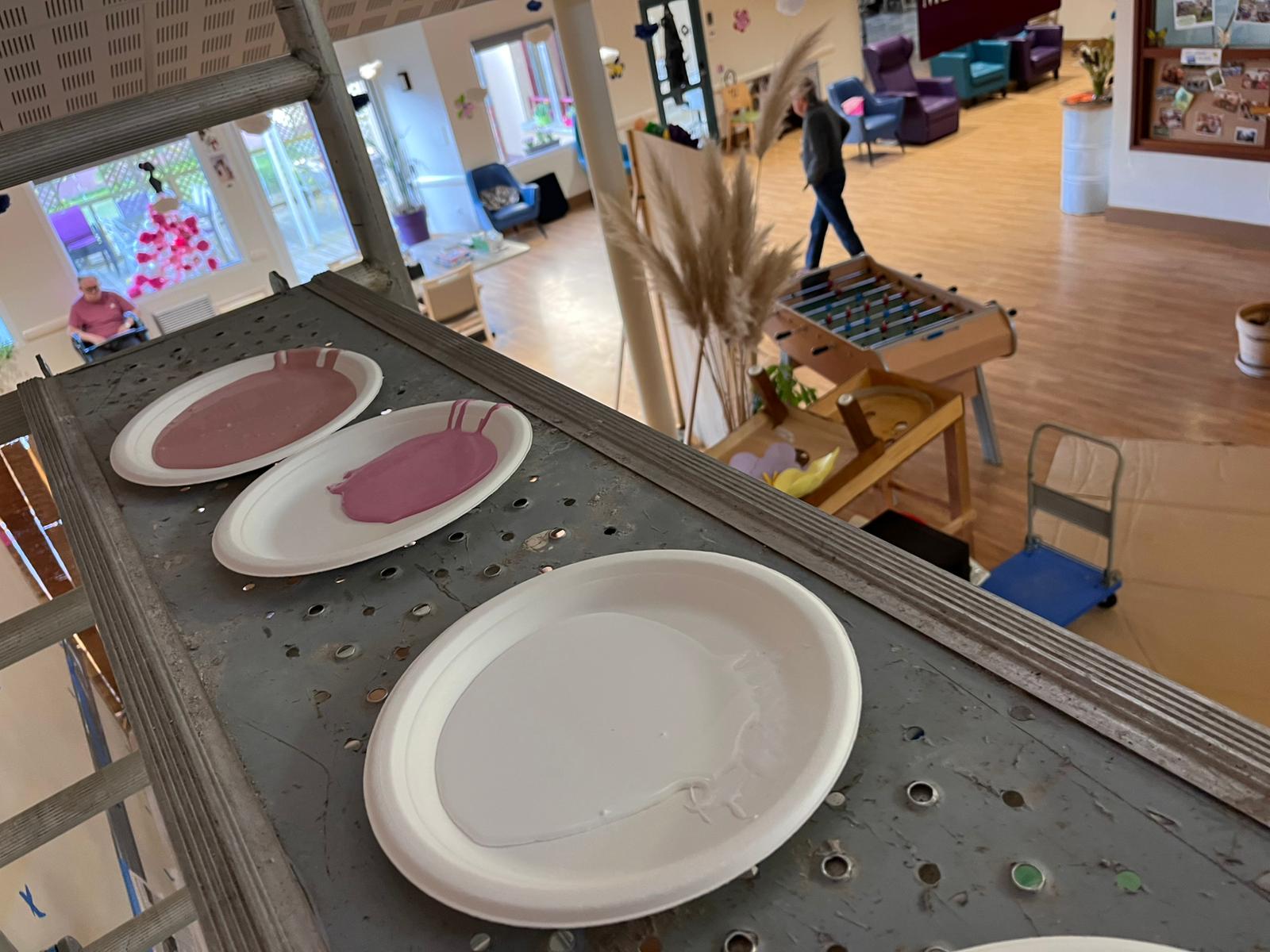 - Elaboration de la fresque à partir des croquis et des essais de couleurs réalisés avec les résidents