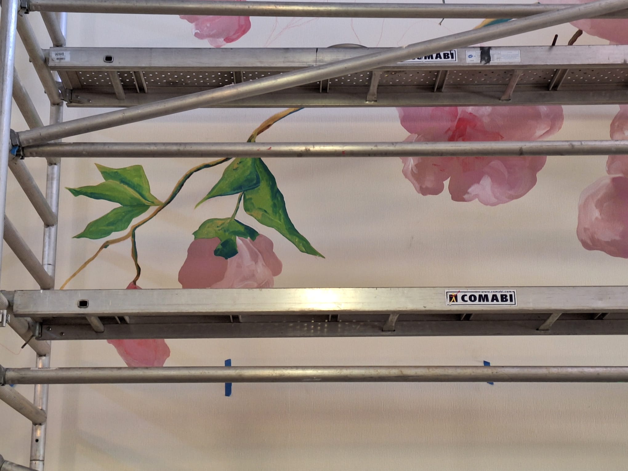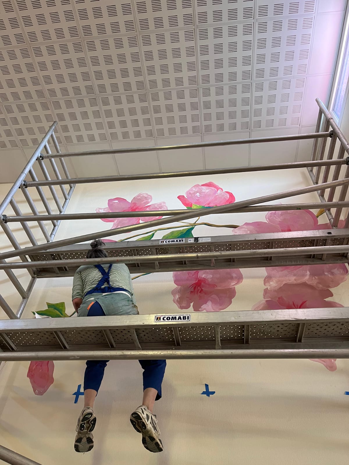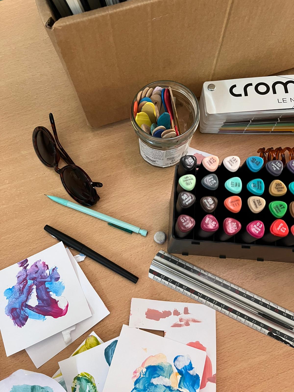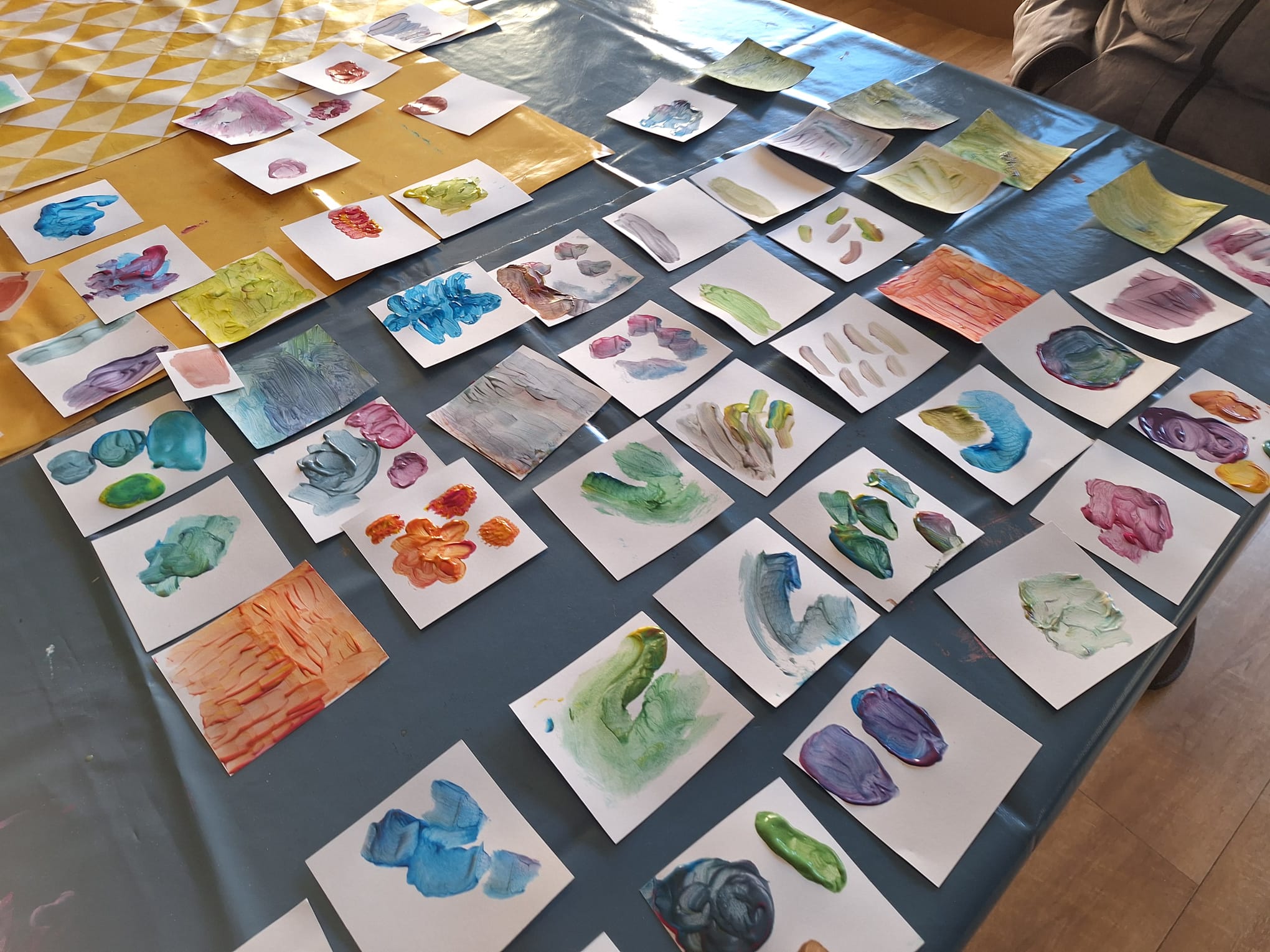 - Elaboration de la fresque à partir des croquis et des essais de couleurs réalisés avec les résidents