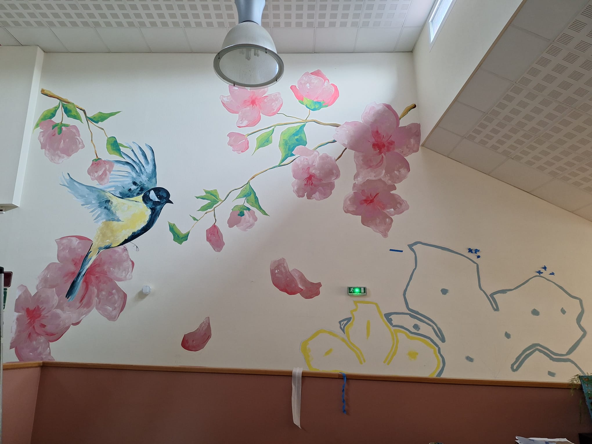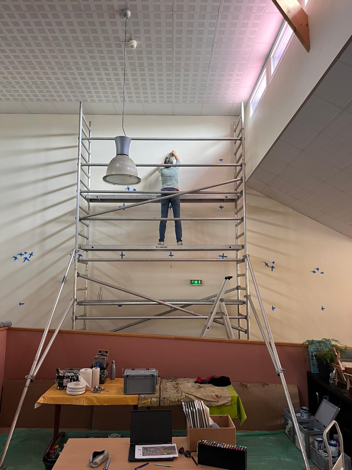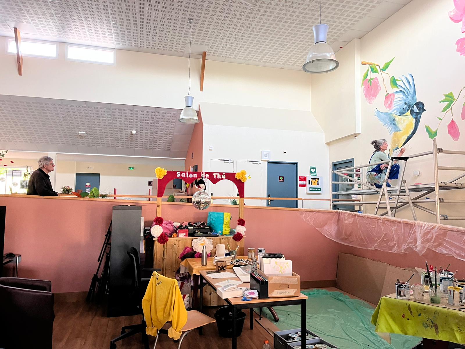 - Projet : Fresque murale sur le grand mur de la salle de vie